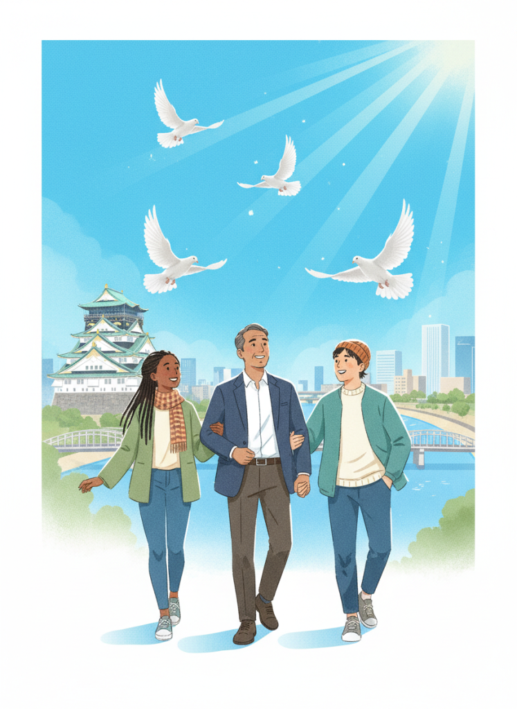 私たちは、大阪を基点に、国内外の平和課題・人権課題に取り組み、未来の世代が安心して暮らせる社会を築くため活動しています。